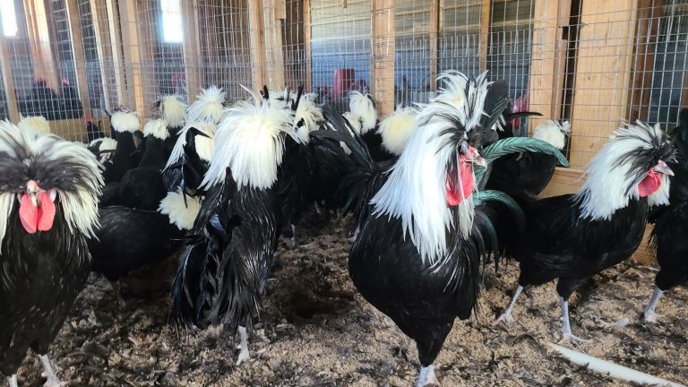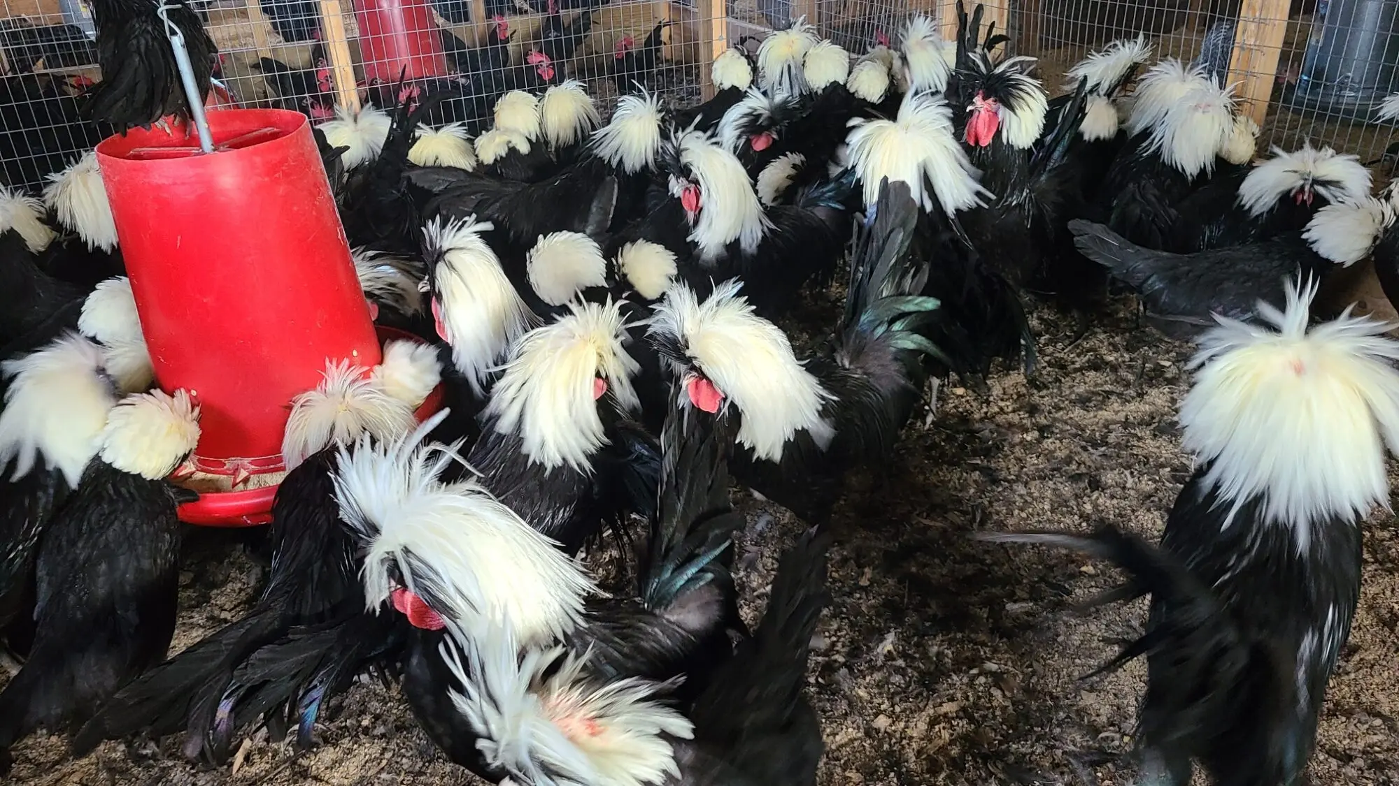 Gamefowlsranch has White Crested Black Polish chicks available. The Polish breed originated in the Netherlands. Several varieties of this chicken breed were admitted into the American Standard of Perfection from more than a century ago.