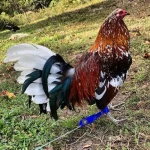 Regarded as the most beautiful gamecock of its time, and even today the White hackles is a classic base gamefowl that is favored for breeding strong hitting fighters. Whiehackles have straight combed, are red-eyed, are 90% yellow-red in color, and the remaining 10% are spangled, mustard colored hackles. White hackles have nice broad shoulders, compact build and heavy plumage.